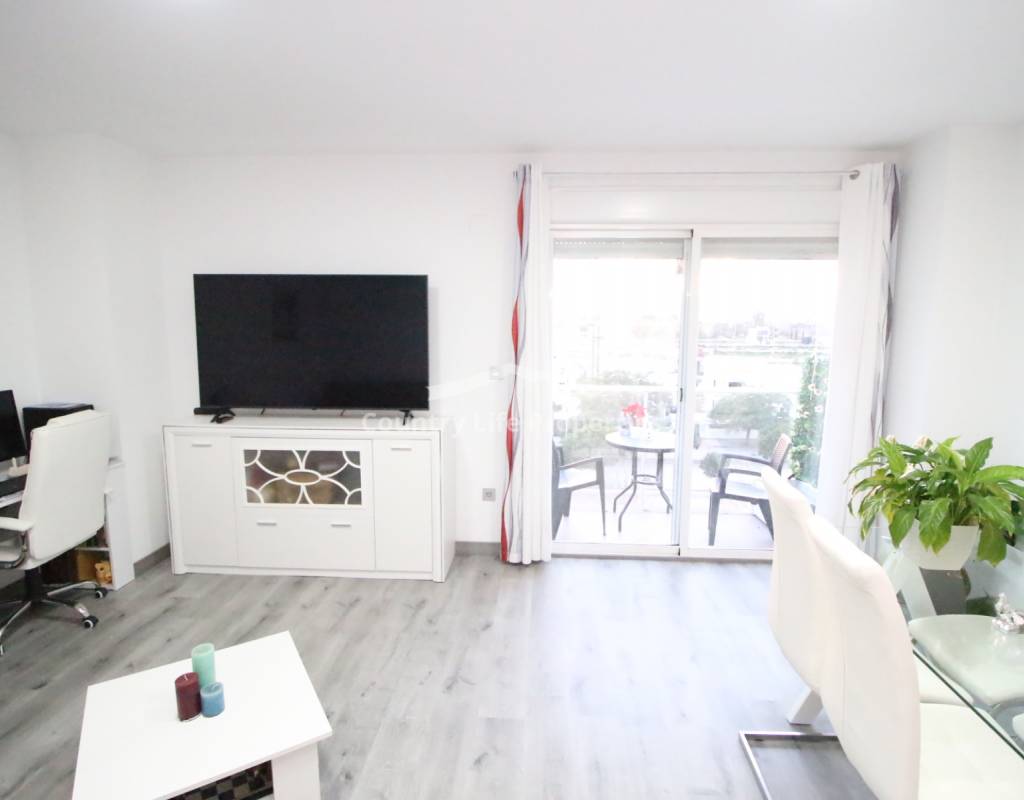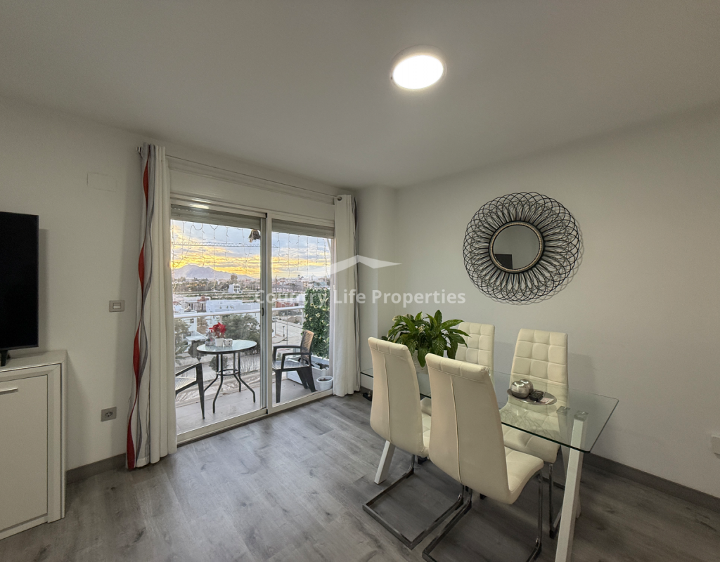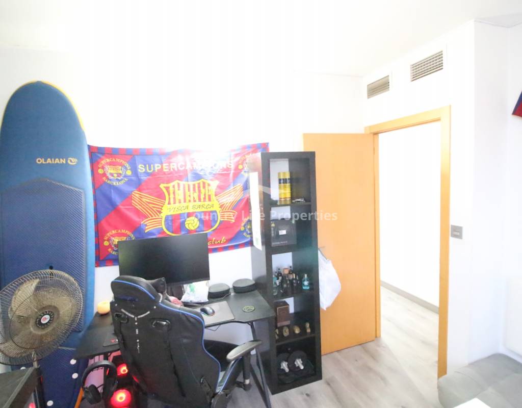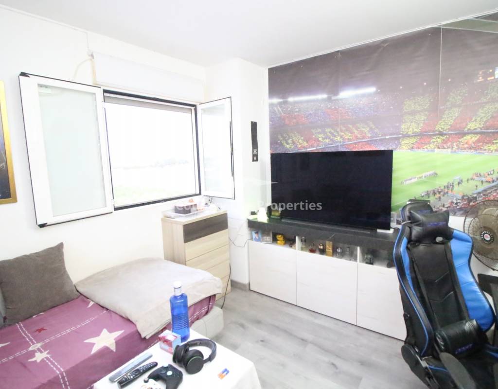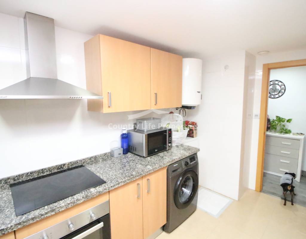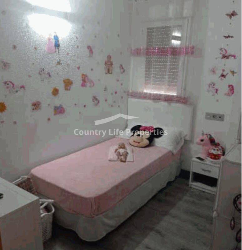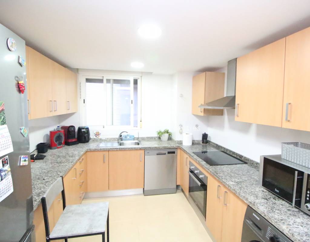La vivienda cuenta con 4 dormitorios, 2 baños y una cocina independiente. El luminoso salón-comedor tiene acceso directo a un balcón con vistas a la piscina comunitaria, proporcionando un entorno agradable y relajante.
