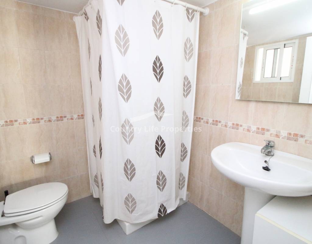 La vivienda cuenta con un amplio salón-comedor, ideal para relajarse y recibir invitados, junto con una cocina independiente de buen tamaño. Dispone de tres dormitorios espaciosos y dos baños completos, lo que la hace ideal para familias o quienes buscan espacio adicional.