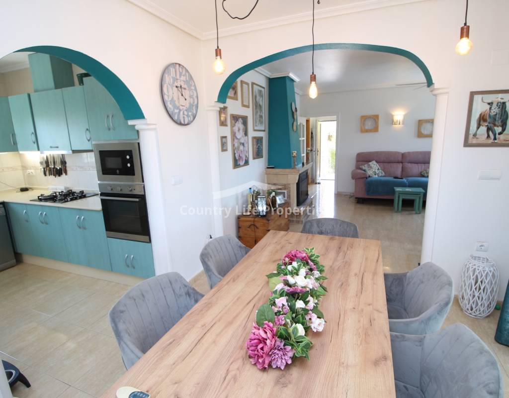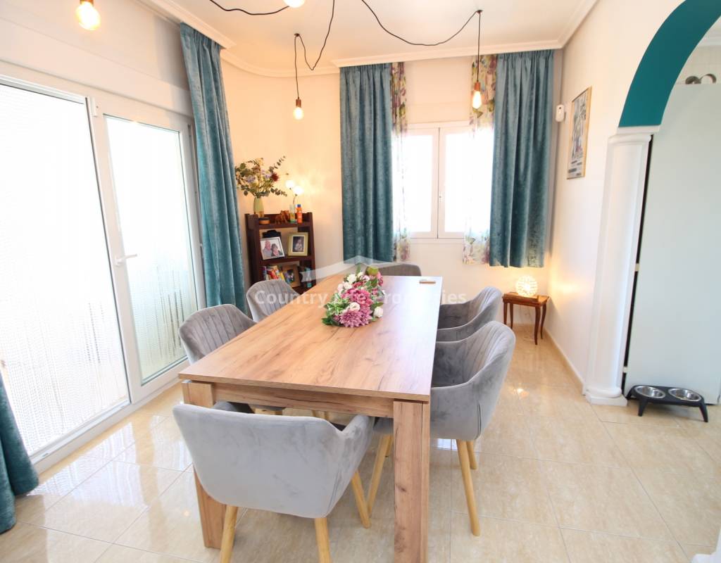 Découvrez cette charmante villa à Catral, où confort, style et art de vivre méditerranéen s'harmonisent parfaitement. Avec trois chambres et deux salles de bains, cette maison a été soigneusement rénovée pour offrir un espace de vie chaleureux et fonctionnel. Une pièce polyvalente—actuellement utilisée comme bureau—peut facilement être transformée en chambre confortable si besoin. Au rez-de-chaussée, vous trouverez également une salle de bains familiale complète et un placard astucieux sous l'escalier. La propriété comprend également un vaste salon, un coin salle à manger séparé et une cuisine entièrement indépendante—idéale pour le quotidien comme pour recevoir.