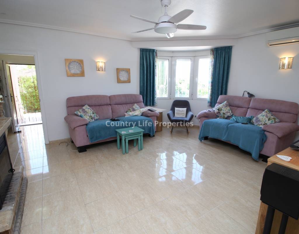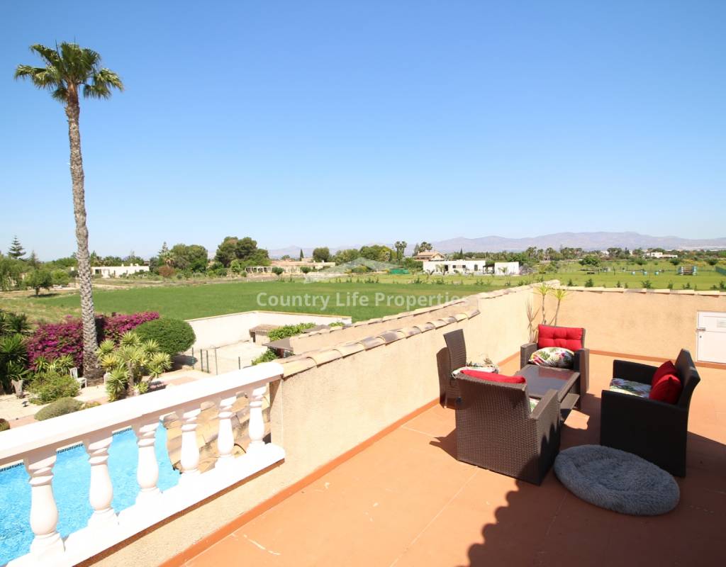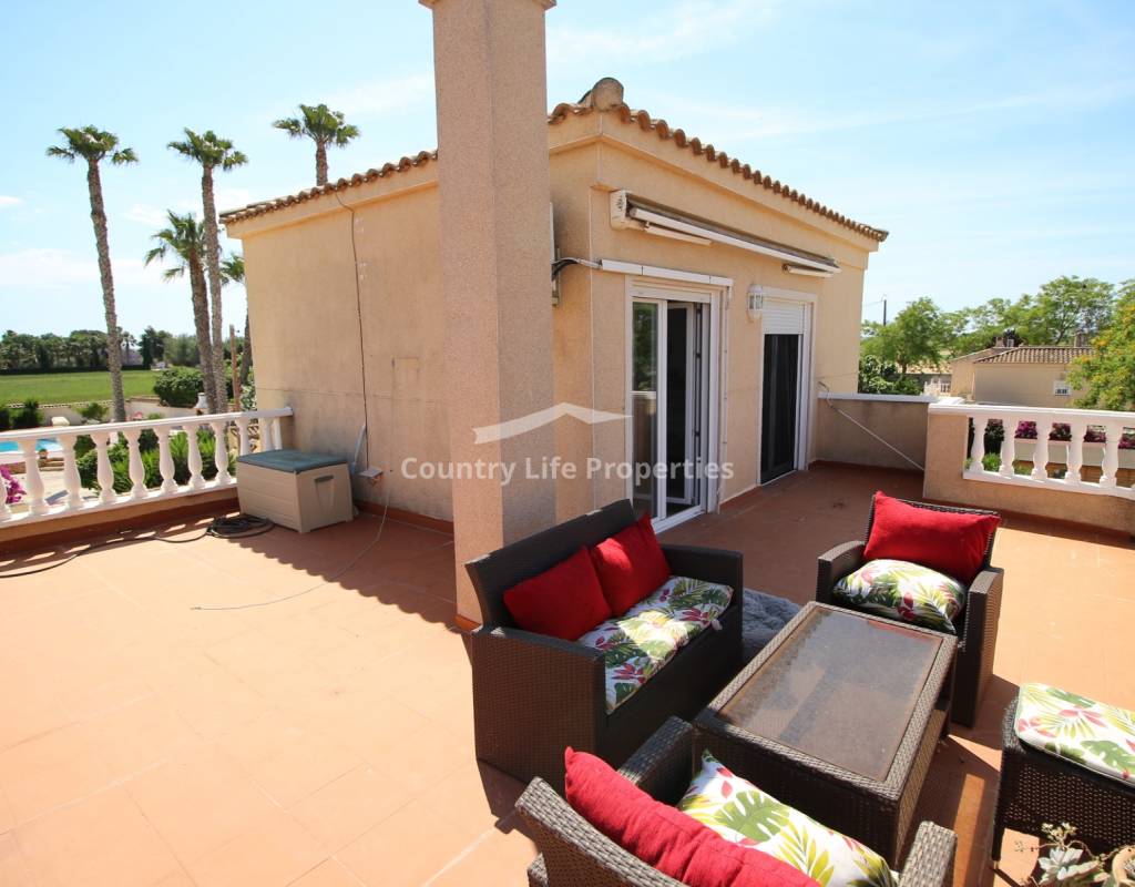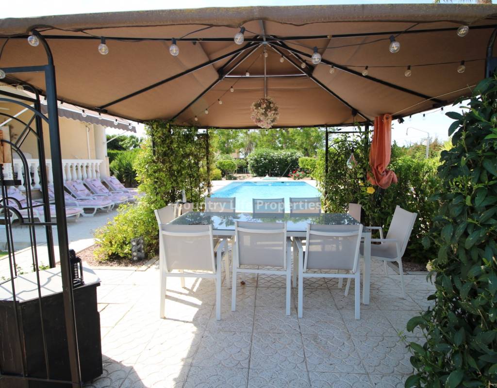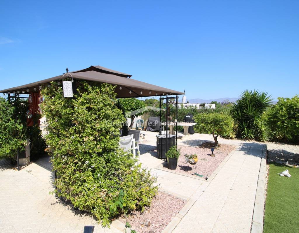 À l'extérieur, la villa continue de séduire avec ses arbres fruitiers matures, une piscine étincelante, un gazebo ombragé et un abri voiture—tout ce qu'il faut pour profiter pleinement du soleil espagnol.