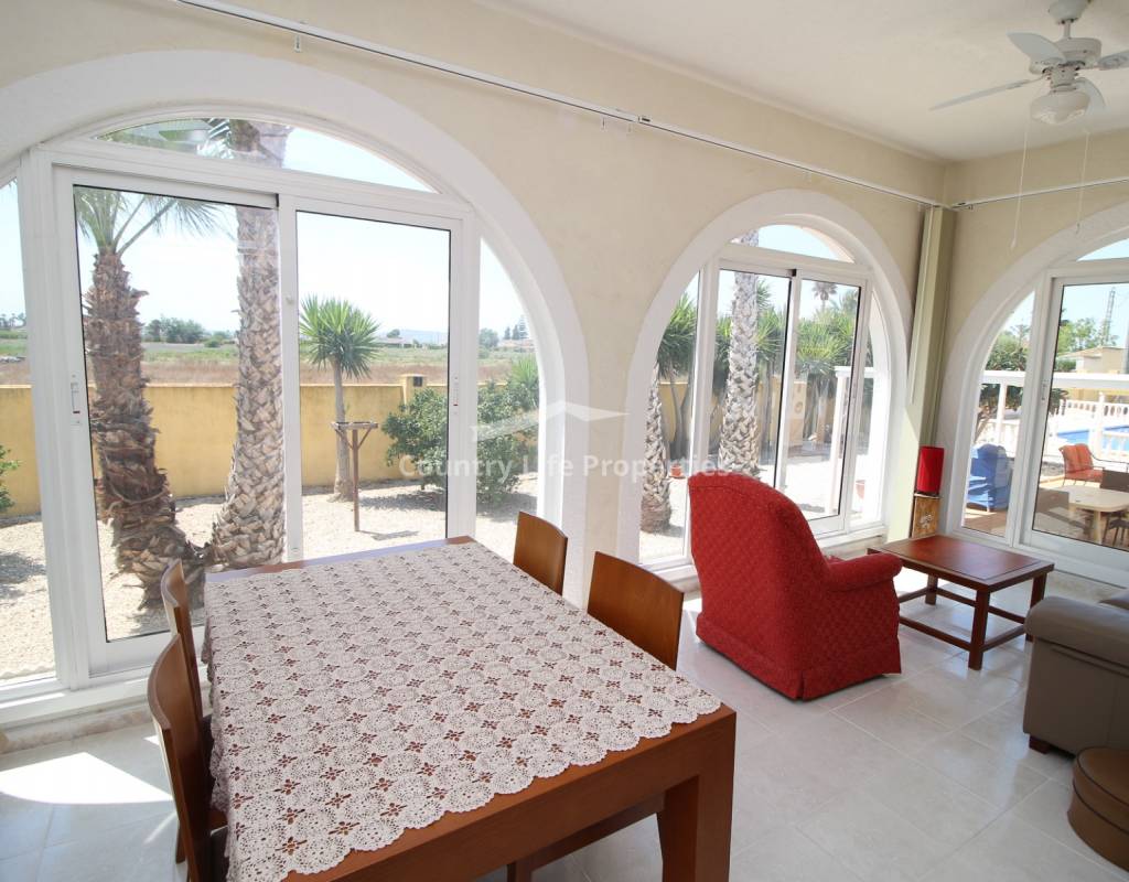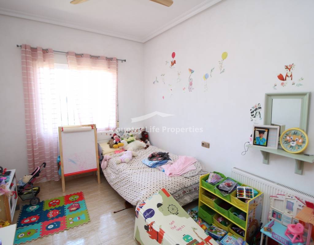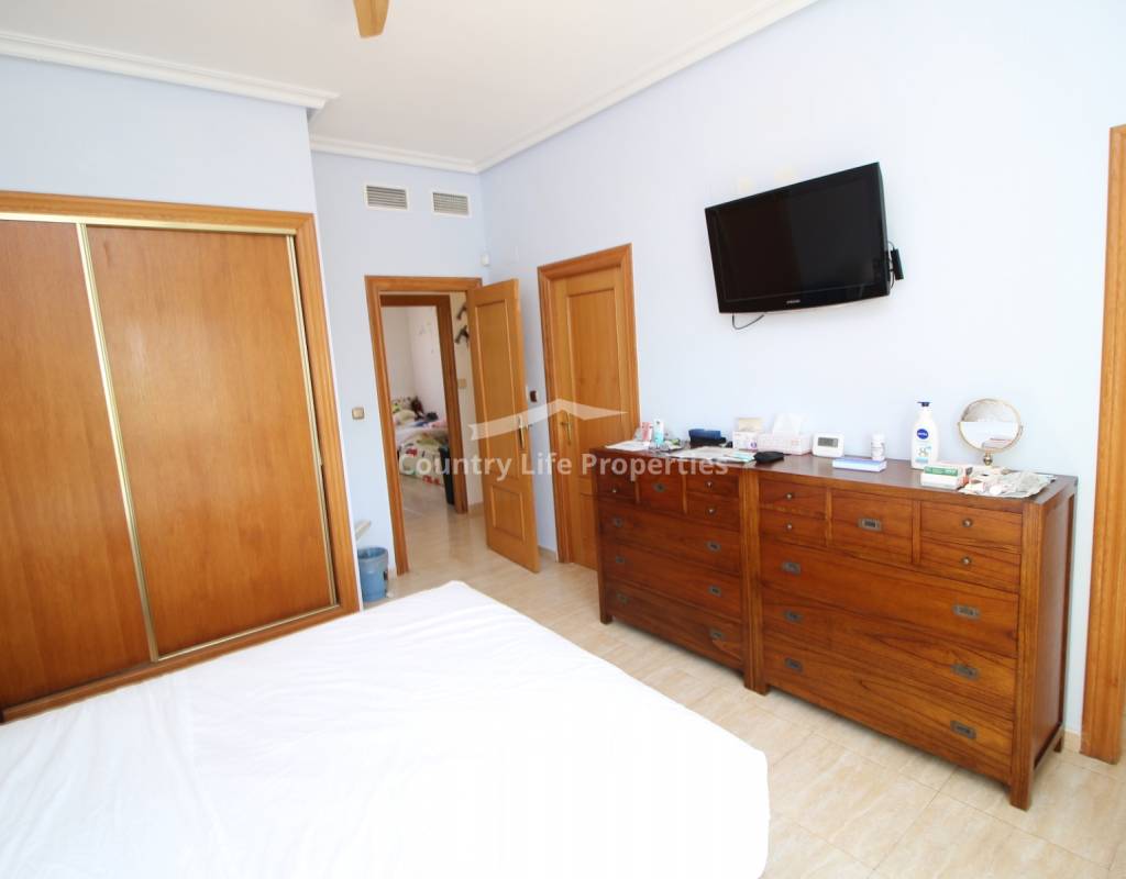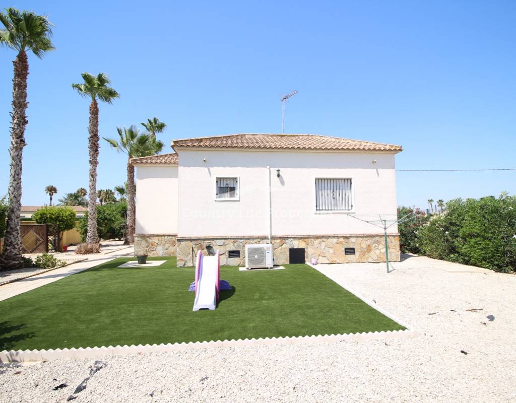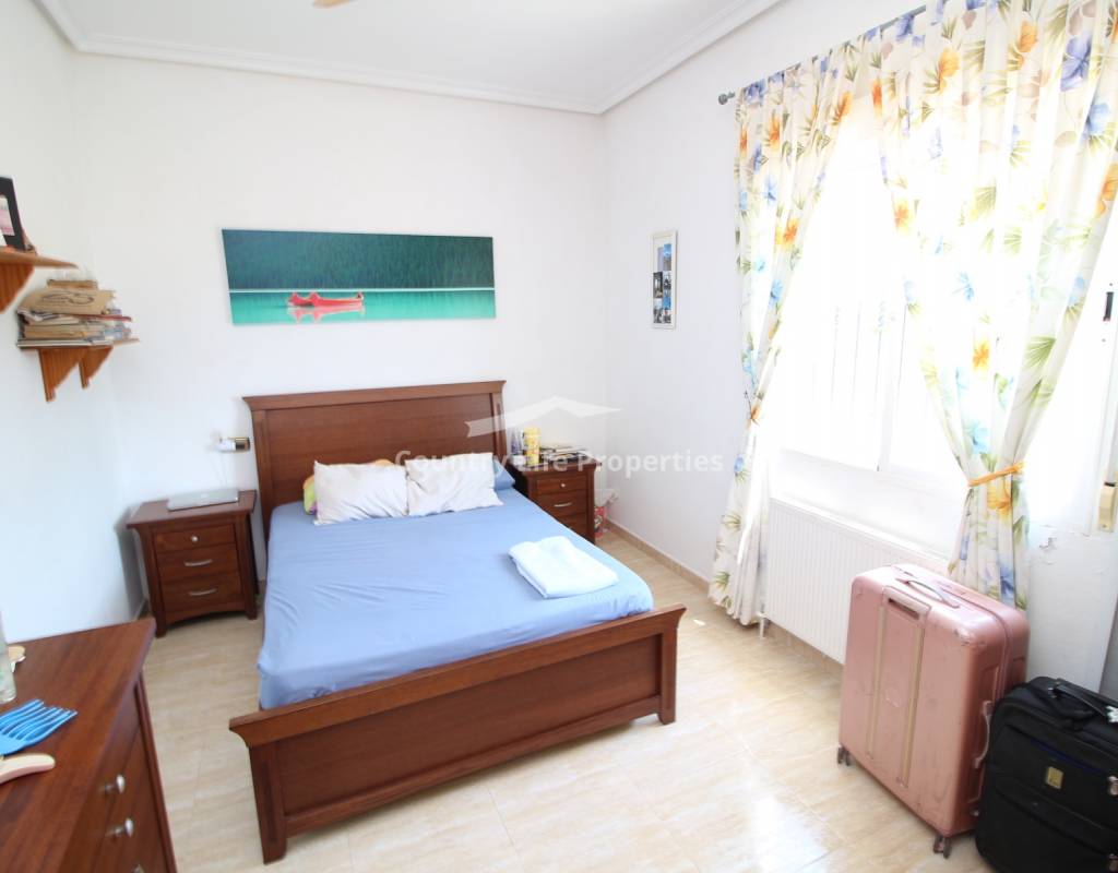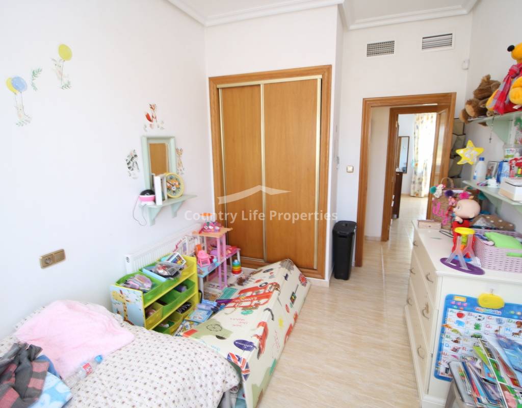 La propriété comprend quatre chambres spacieuses, toutes équipées de placards intégrés, ainsi que trois salles de bains, dont une à l'extérieur — idéale pour les réunions estivales ou les journées autour de la piscine. La salle de bains familiale est fonctionnelle et bien aménagée pour un usage quotidien.
