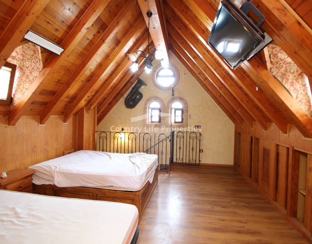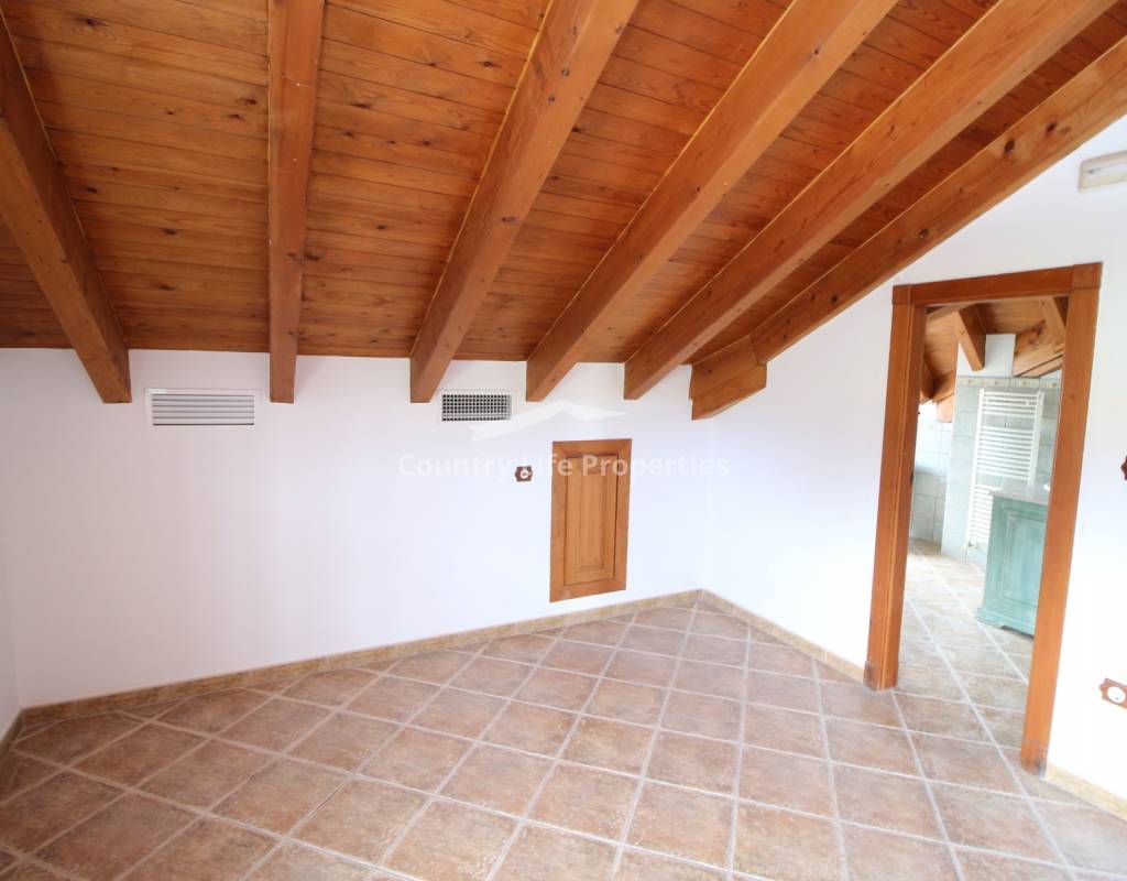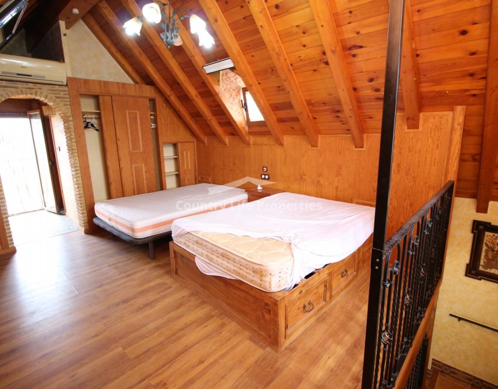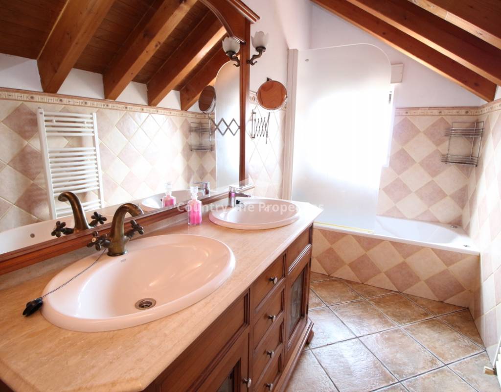 Au rez-de-chaussée se trouvent deux grandes chambres, dont une suite parentale avec salle de bains privative et dressing. La seconde chambre, également spacieuse, peut servir de chambre d'amis, bureau ou chambre supplémentaire. À l'étage, sous des plafonds en bois, on trouve une autre chambre avec grande salle de bain et placards intégrés, ainsi qu'une luxueuse suite principale avec dressing, salle de bains privative et accès à une terrasse donnant sur la piscine — un véritable havre de paix.