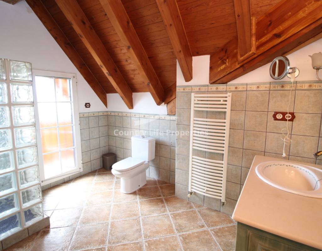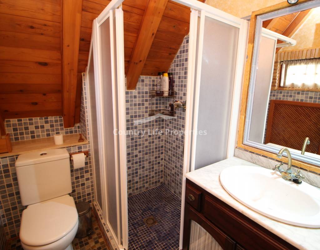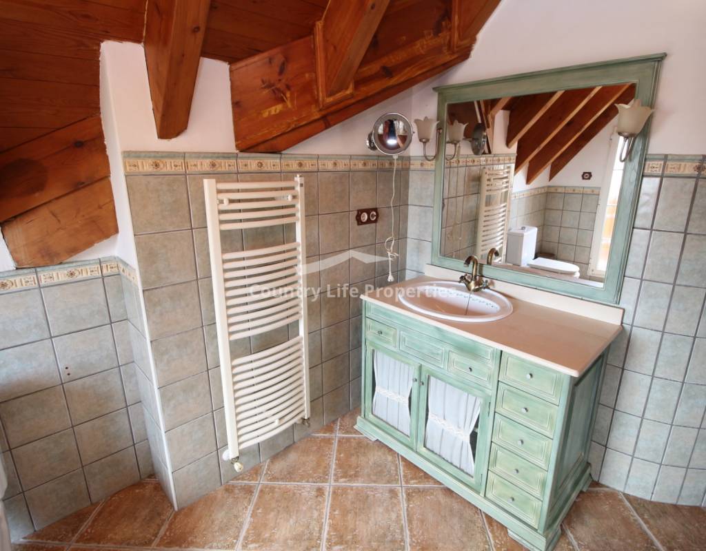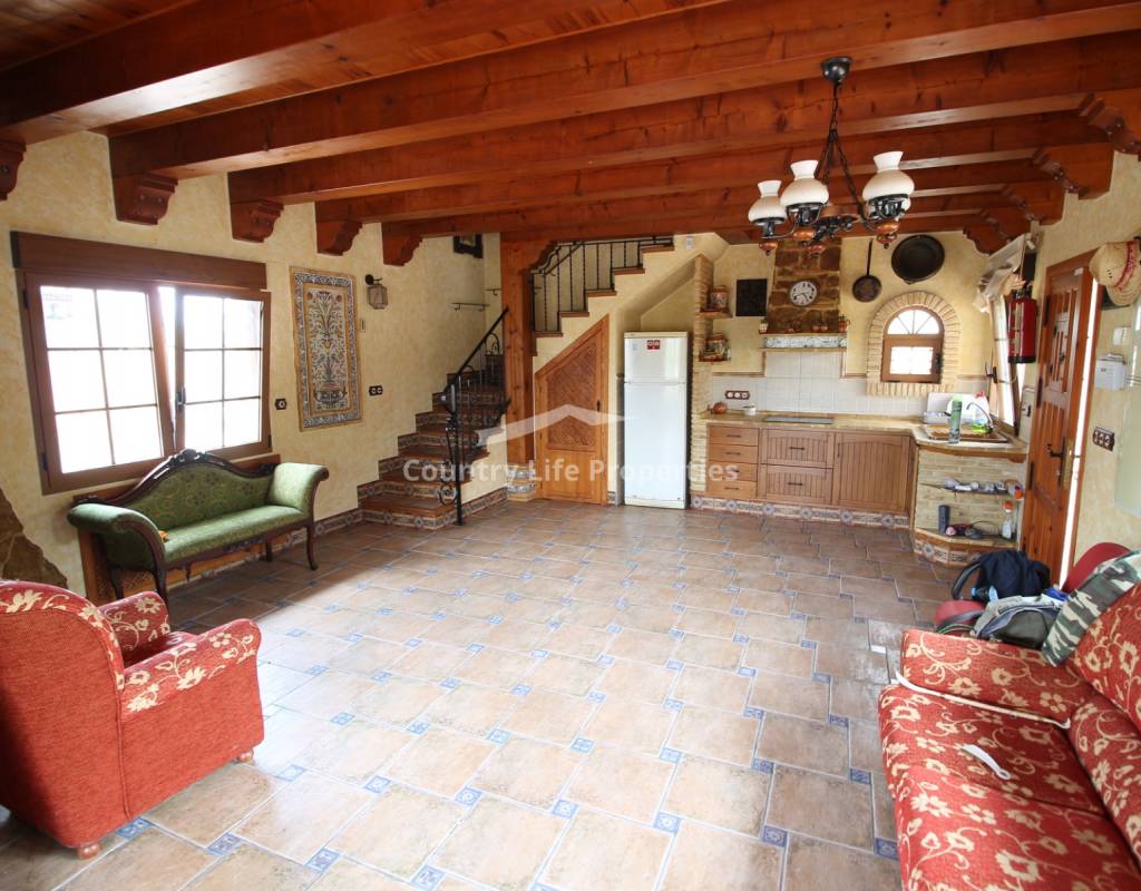 La maison principale s'ouvre sur un salon lumineux et spacieux, relié à une grande cuisine ouverte et une buanderie avec rangements intégrés. Une large terrasse couverte invite à savourer des petits-déjeuners tranquilles ou à se détendre le soir. Le confort est assuré toute l'année grâce à un système complet de climatisation et un chauffage au diesel avec radiateurs intégrés.