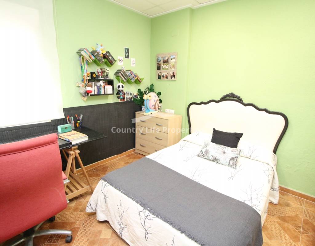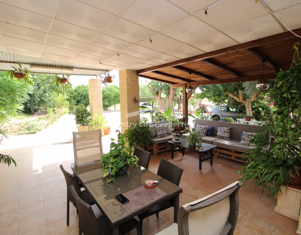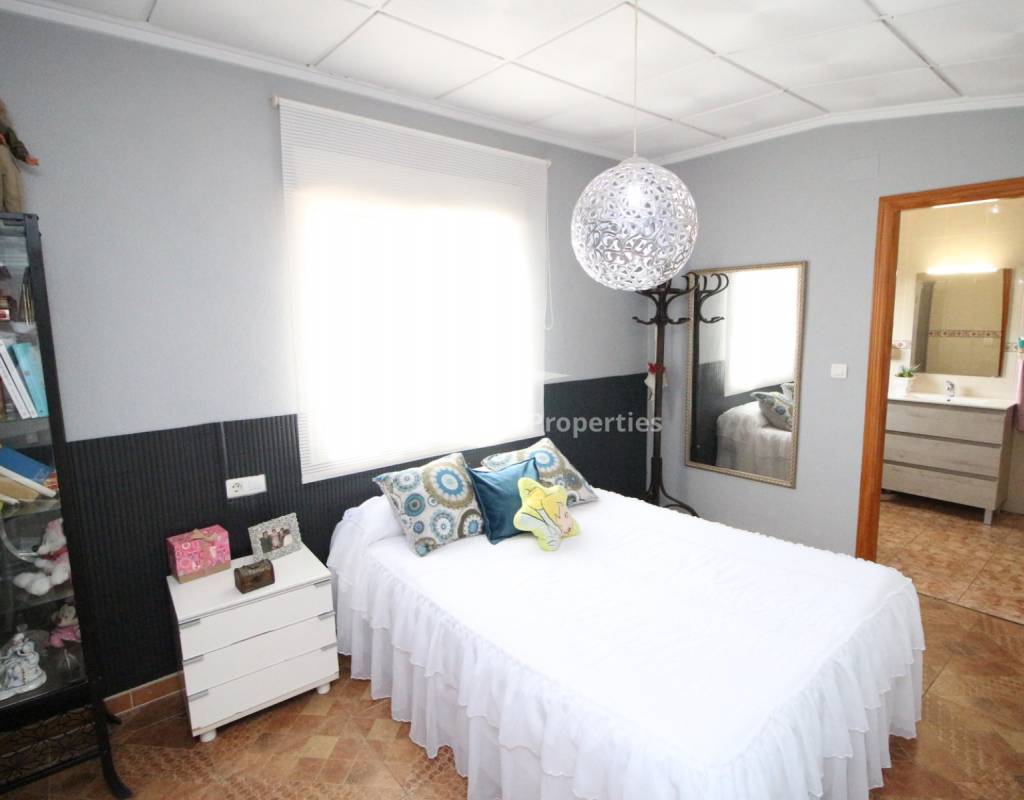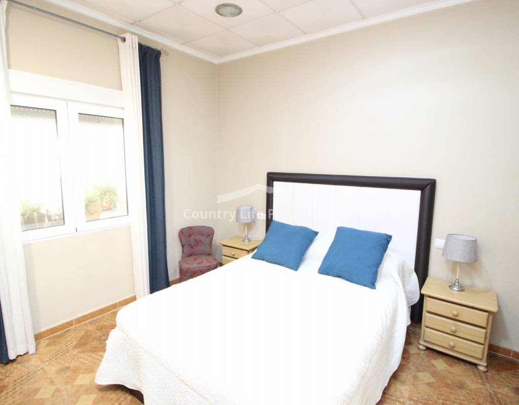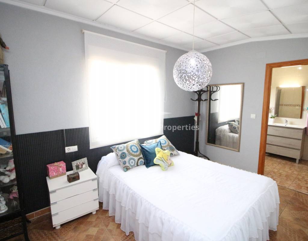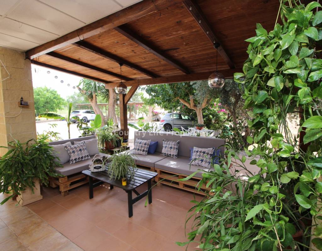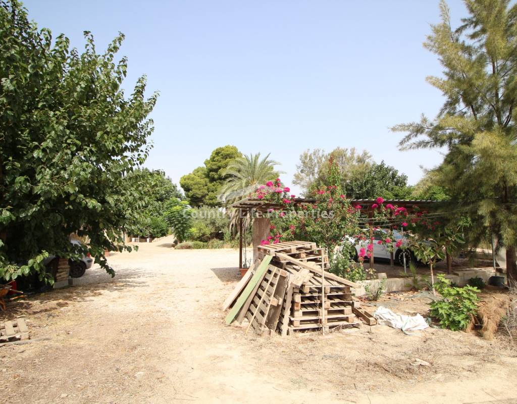 À l'intérieur, un séjour lumineux avec cheminée est relié à la cuisine par une arche. Une cuisine indépendante de bonne taille mène à une grande buanderie et espace de rangement, qui s'ouvre ensuite sur le patio et l'ancien poulailler désormais transformé en deux débarras.