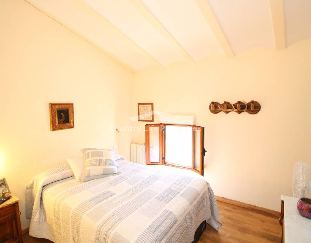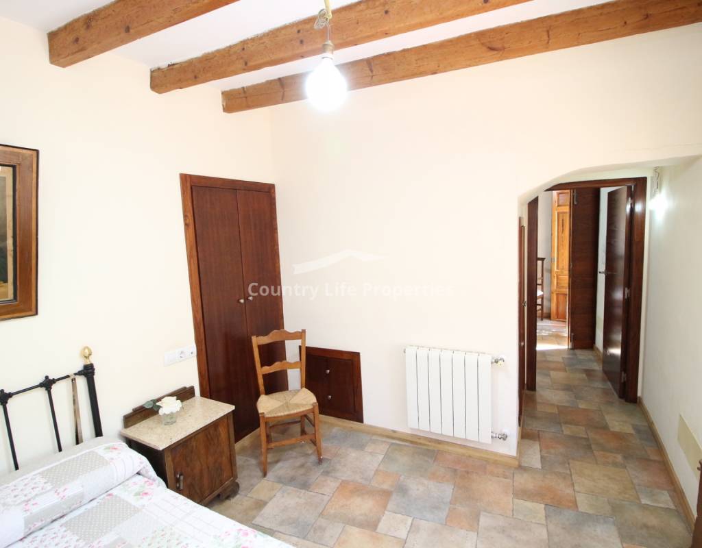 Binnen beschikt de woning over een zeer ruime woonkeuken met open haard, een gezinsbadkamer met inloopdouche en dubbele wastafel, een gezellige woonkamer met cassettehaard en een grote bovenhal die kan dienen als tweede zitkamer. Van hieruit leidt de trap naar de eerste verdieping, waar prachtige originele houten balken de plafonds van de begane grond sieren.