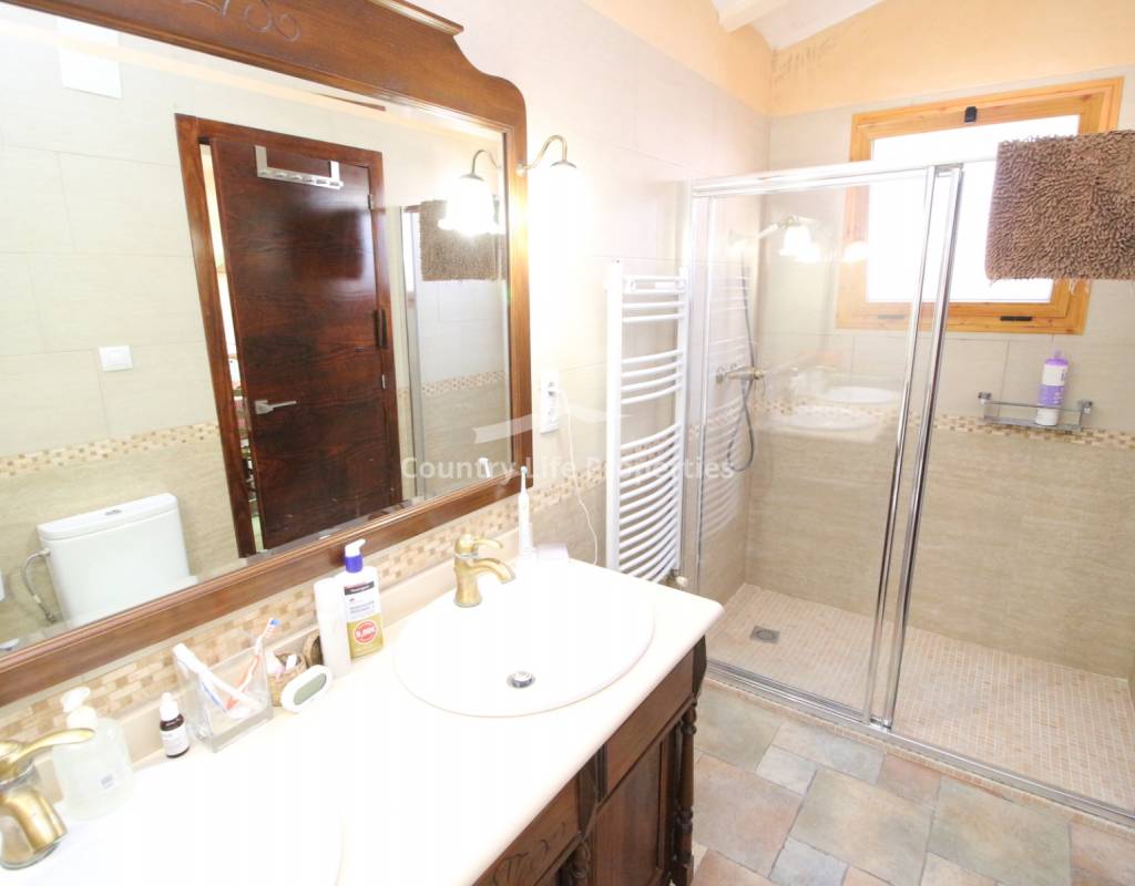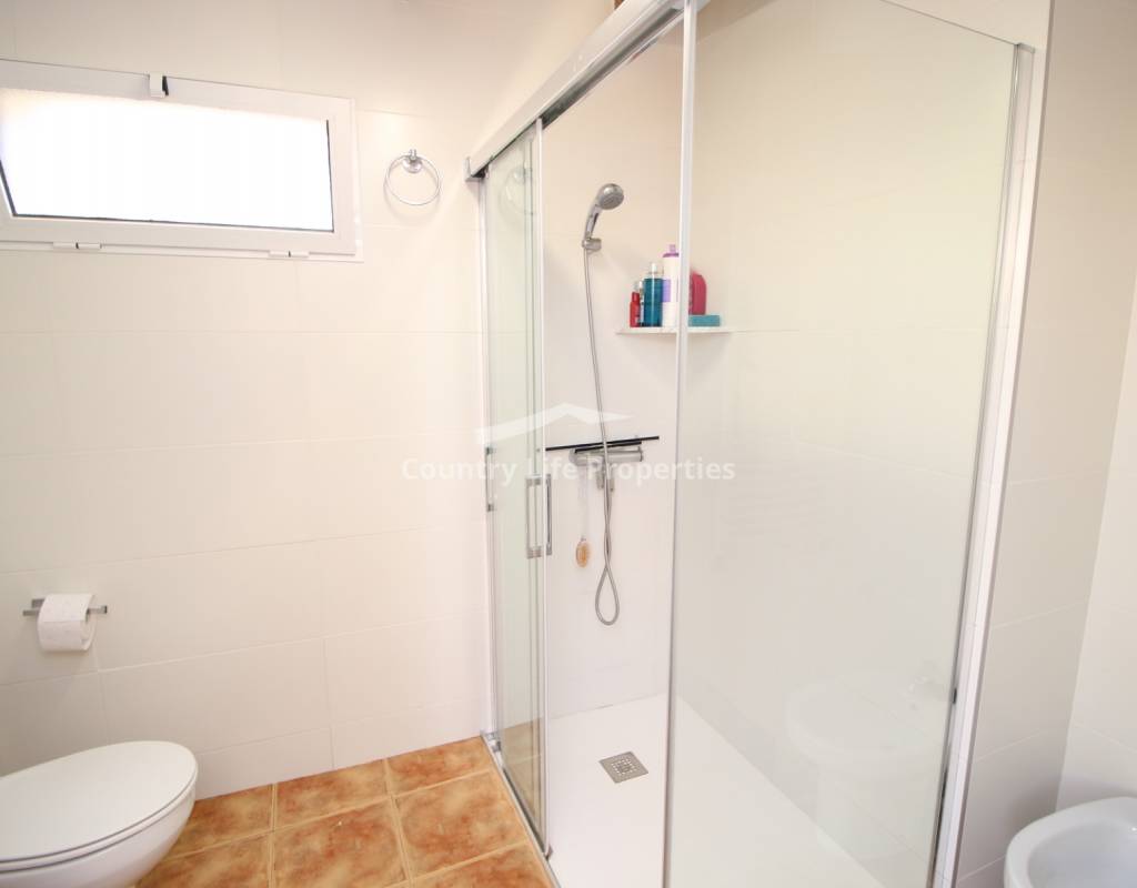 Een van de slaapkamers heeft een ingebouwde kast en directe toegang tot een tweede terras met een uitschuifbare pergola. Boven zijn er drie ruime tweepersoonsslaapkamers (waarvan twee verbonden) met inbouwkasten, plus een kleedruimte. Twee slaapkamers delen een en-suite badkamer met een grote inloopdouche.