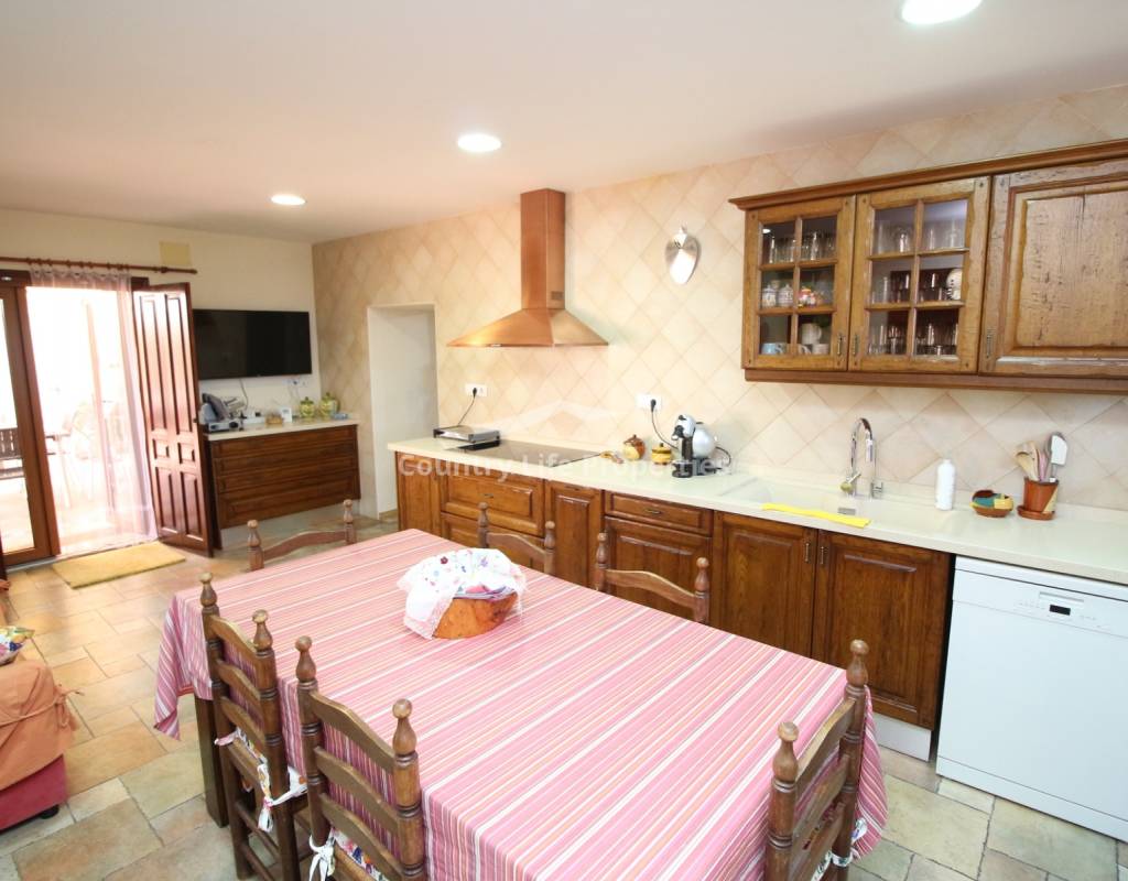 De buitenruimte omvat een barbecue met stenen oven, een zomerkeuken en een badkamer buiten met douche, perfect om gasten te ontvangen. Er is een garage met ruimte voor twee of drie auto's, plus een extra kamer die momenteel wordt gebruikt als opslag of multifunctionele ruimte, maar dankzij de toegang tot de patio eenvoudig kan worden omgevormd tot extra woonruimte.