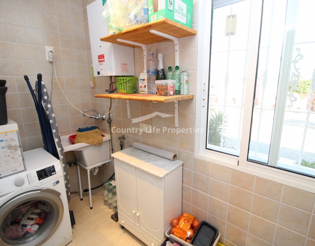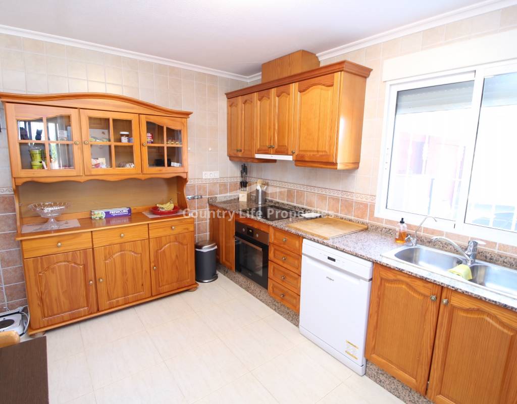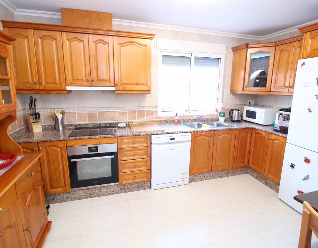 De keuken is apart, groot en praktisch, gescheiden van de eetkamer en voorzien van een bar. Daarnaast is er een ruime bijkeuken waar de gasboiler staat. Zowel de keukenapparatuur als de boiler zijn minder dan 5 jaar oud.