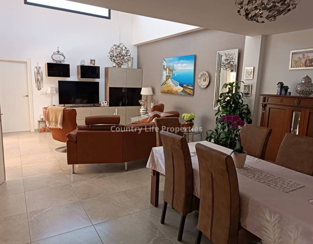 Outside, the private 6x3 pool becomes the perfect spot to enjoy the Mediterranean climate, complemented by a sunny solarium ideal for relaxing. The villa also includes a storage room, covered parking, and an awning that provides shade on the terrace area. This is a well-kept, functional property located in a pleasant residential environment, close to essential services and offering a relaxed lifestyle.
