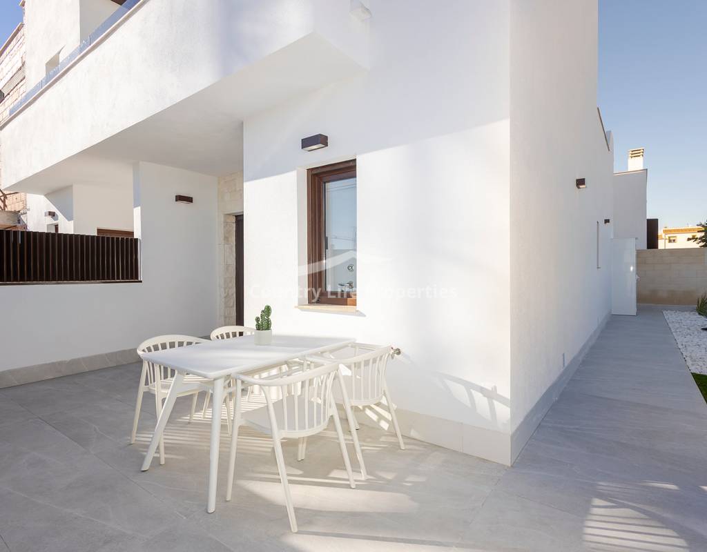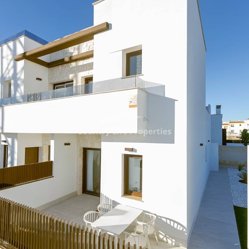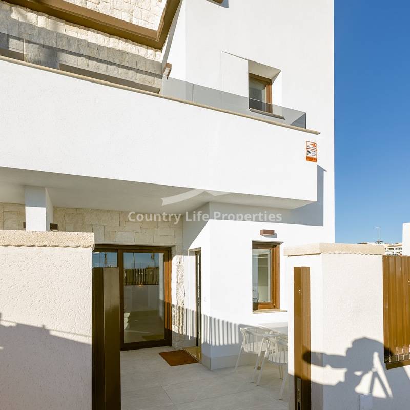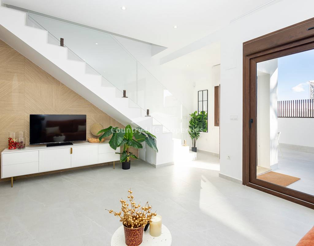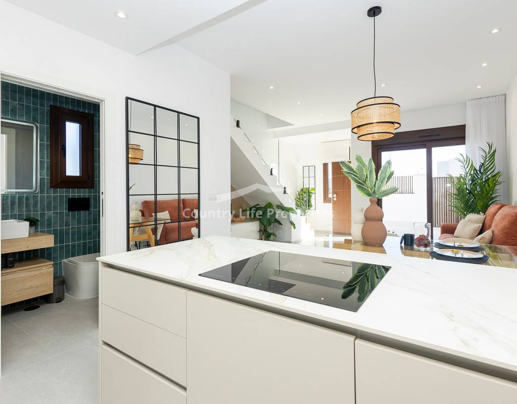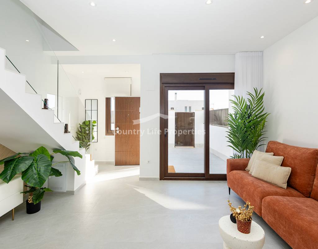 Modern 3-bedroom townhouse in an exclusive community with pool, parking, plaza and children's playground, surrounded by nature and close to all amenities. The property features a bright open-plan living-dining area with an integrated kitchen, opening onto a private terrace and garden—ideal for outdoor living. Upstairs there are three comfortable bedrooms, including a master suite with access to a private terrace, plus a fantastic private solarium perfect for sunbathing or relaxing. The home is equipped with automated blinds, underfloor heating in the bathrooms, pre-installation for ducted air conditioning, an aerothermal system, and an A-rated energy efficiency certificate. For a limited time, the launch promotion includes a lighting pack, shower screens and a white goods pack: induction hob, oven, microwave, as well as a panel-fronted fridge and dishwasher.