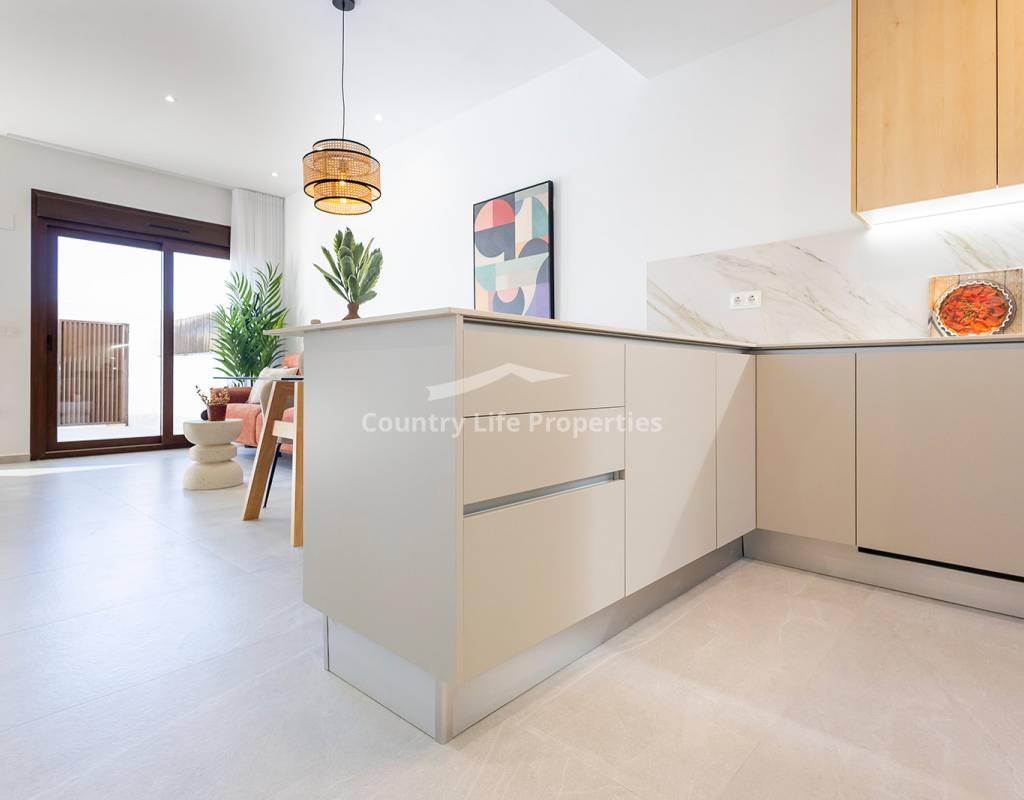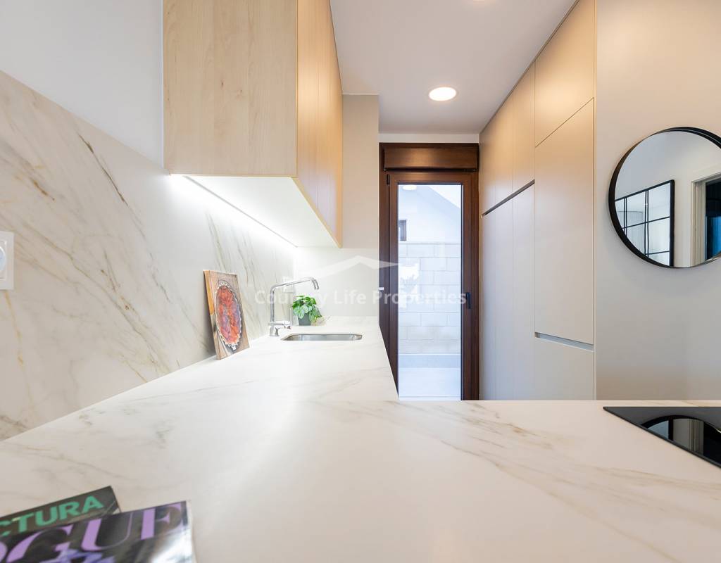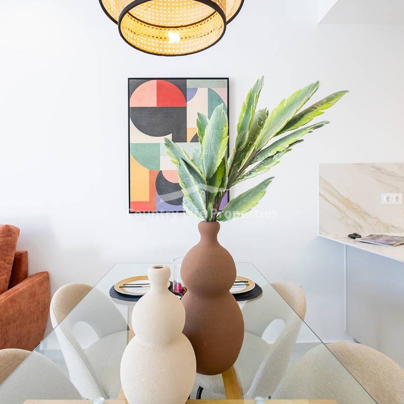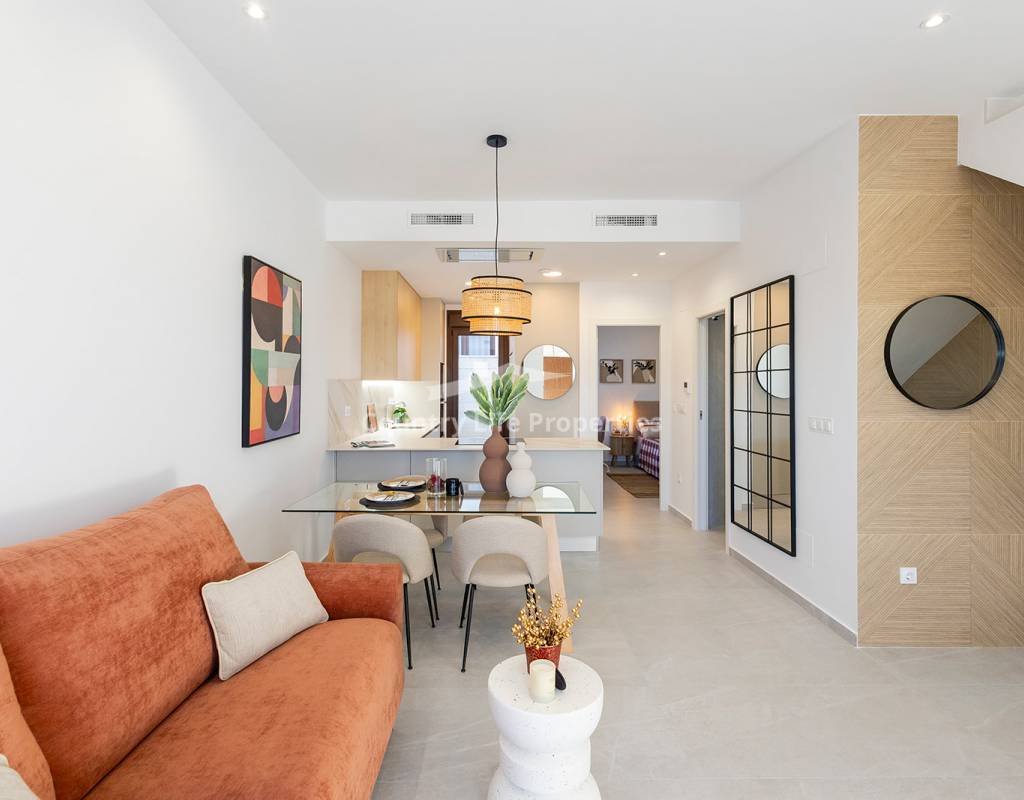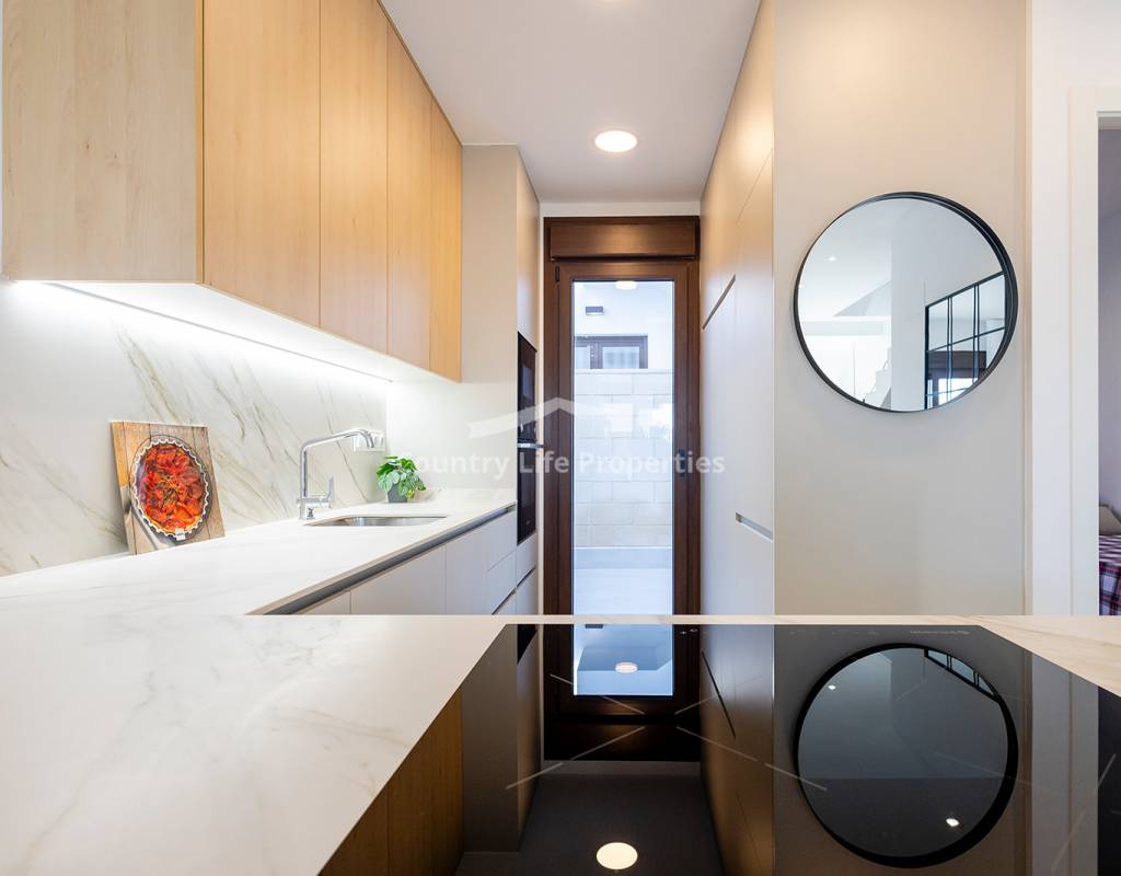 Modern 3-bedroom townhouse in an exclusive community with pool, parking, plaza and children's playground, surrounded by nature and close to all amenities. The property features a bright open-plan living-dining area with an integrated kitchen, opening onto a private terrace and garden—ideal for outdoor living. Upstairs there are three comfortable bedrooms, including a master suite with access to a private terrace, plus a fantastic private solarium perfect for sunbathing or relaxing. The home is equipped with automated blinds, underfloor heating in the bathrooms, pre-installation for ducted air conditioning, an aerothermal system, and an A-rated energy efficiency certificate. For a limited time, the launch promotion includes a lighting pack, shower screens and a white goods pack: induction hob, oven, microwave, as well as a panel-fronted fridge and dishwasher.