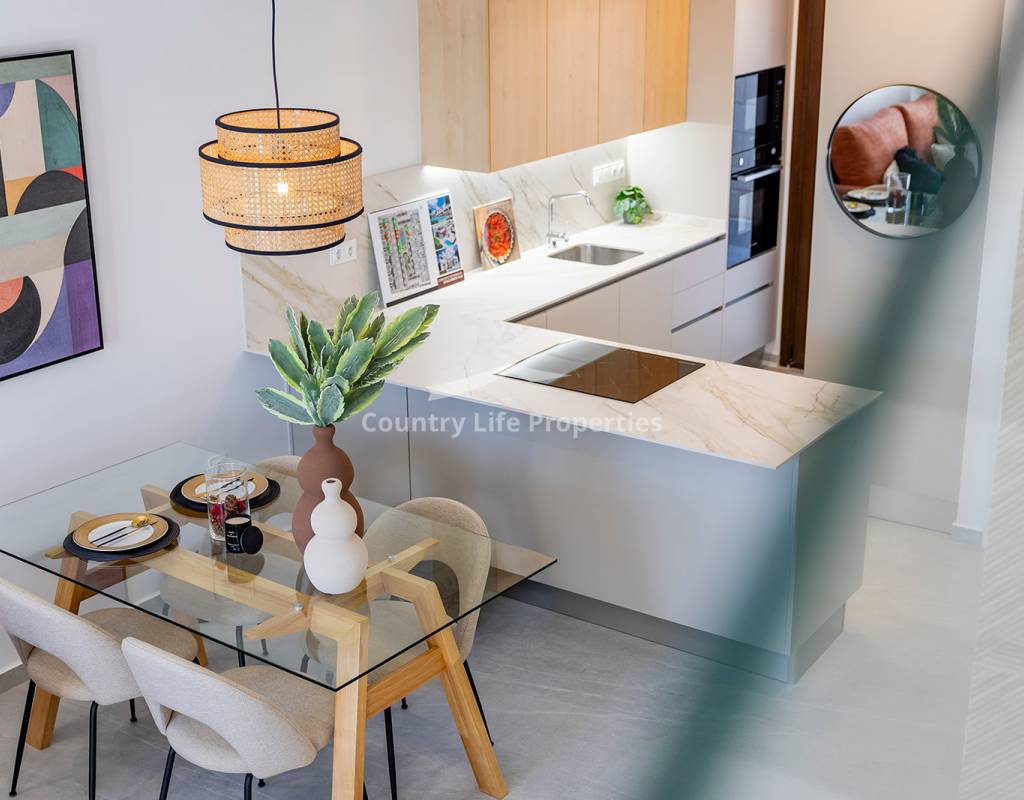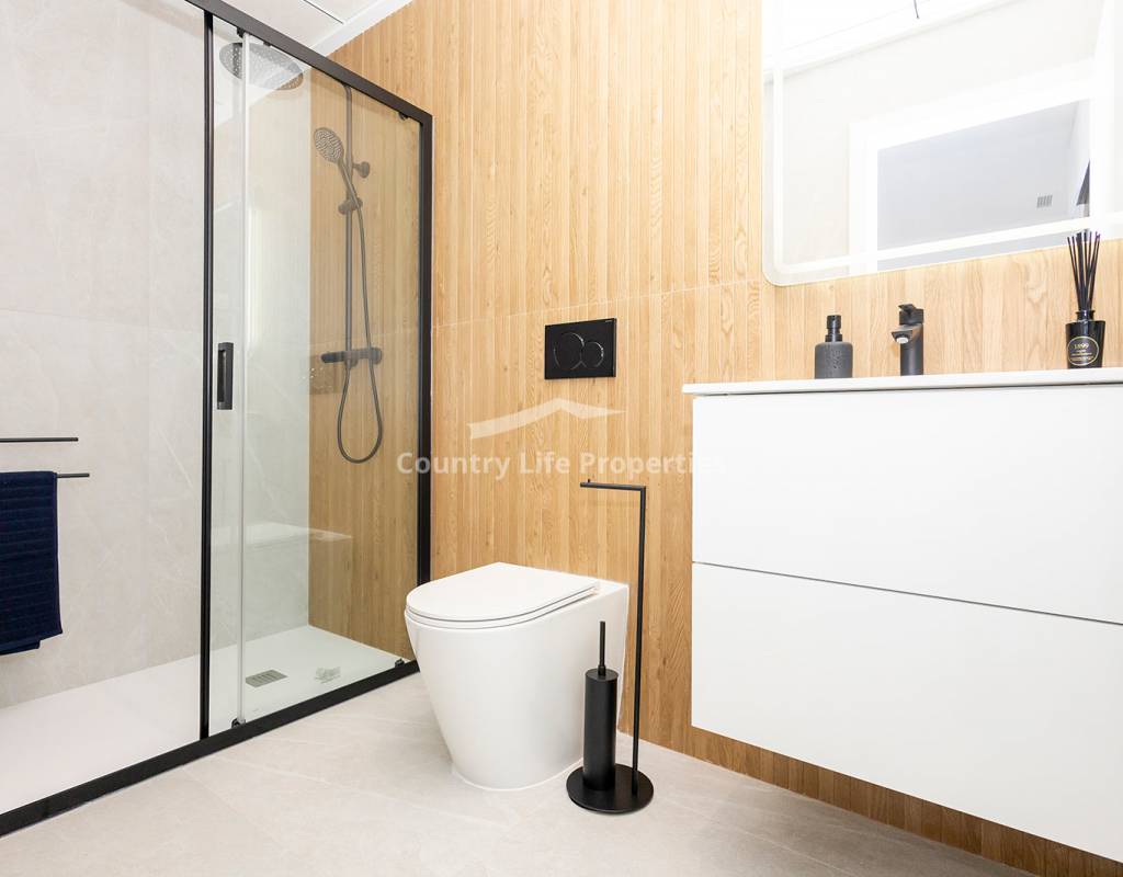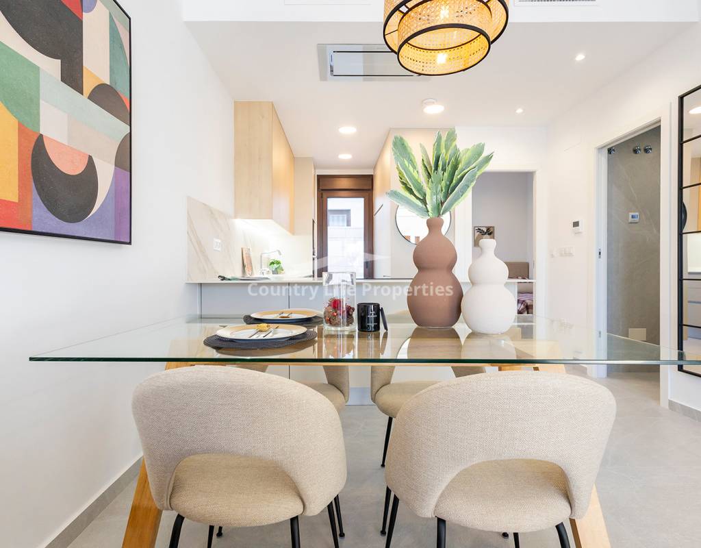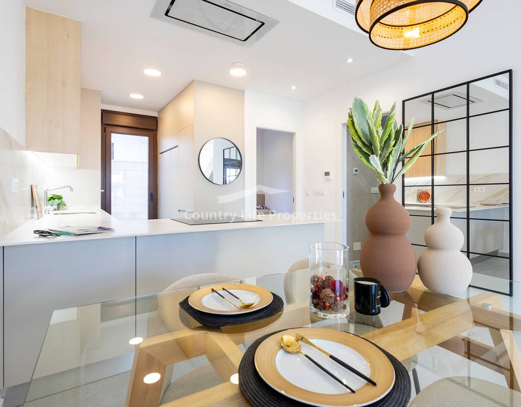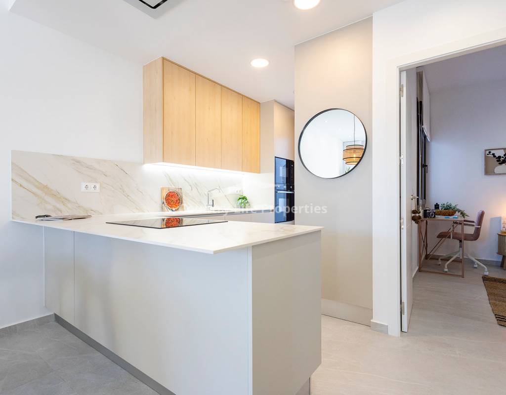 Modern 3-bedroom townhouse in an exclusive community with pool, parking, plaza and children's playground, surrounded by nature and close to all amenities. The property features a bright open-plan living-dining area with an integrated kitchen, opening onto a private terrace and garden—ideal for outdoor living. Upstairs there are three comfortable bedrooms, including a master suite with access to a private terrace, plus a fantastic private solarium perfect for sunbathing or relaxing. The home is equipped with automated blinds, underfloor heating in the bathrooms, pre-installation for ducted air conditioning, an aerothermal system, and an A-rated energy efficiency certificate. For a limited time, the launch promotion includes a lighting pack, shower screens and a white goods pack: induction hob, oven, microwave, as well as a panel-fronted fridge and dishwasher.