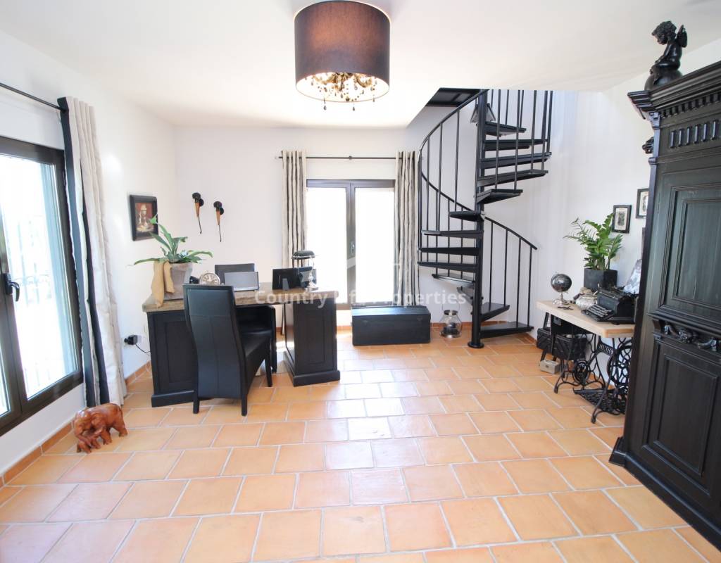 On the upper floor, there is an additional bedroom with en-suite bathroom and access to a private solarium terrace.