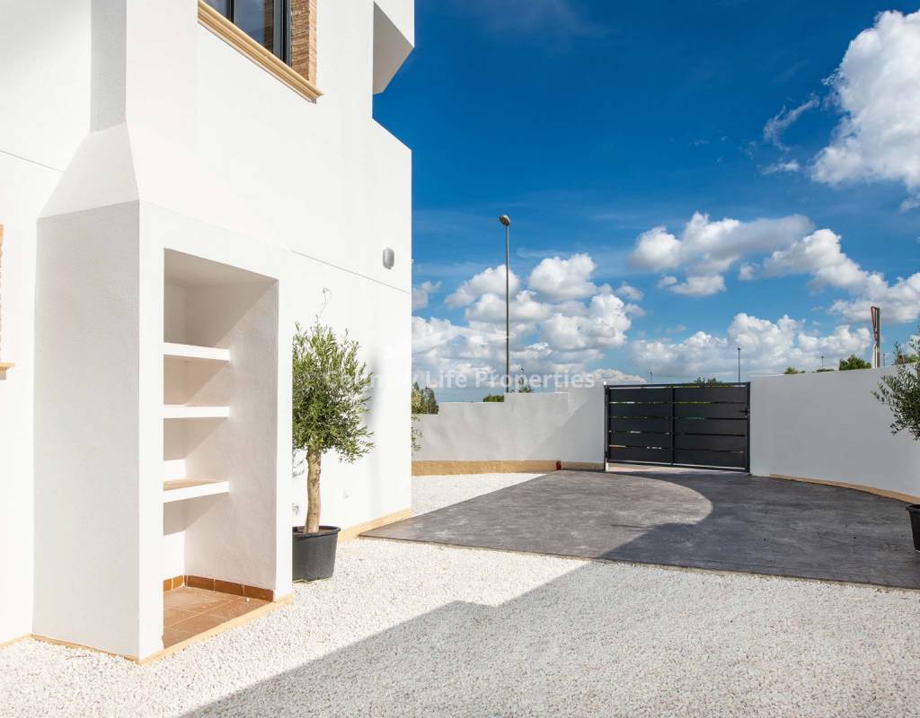 Жилой комплекс включает общий бассейн и благоустроенные зоны отдыха, создавая тихую и приятную среду. Локация очень удобна: всего сорок километров до аэропорта Аликанте–Эль-Альтет, быстрый доступ к автомагистралям AP-7 и A-7, а также близость к городам Ориуэла, Эльче, Аликанте и Мурсия. Рядом расположены гольф-поля La Finca и Vistabella, а также легко добраться до пляжей Гуардамар-дель-Сегура и Торревьехи.
