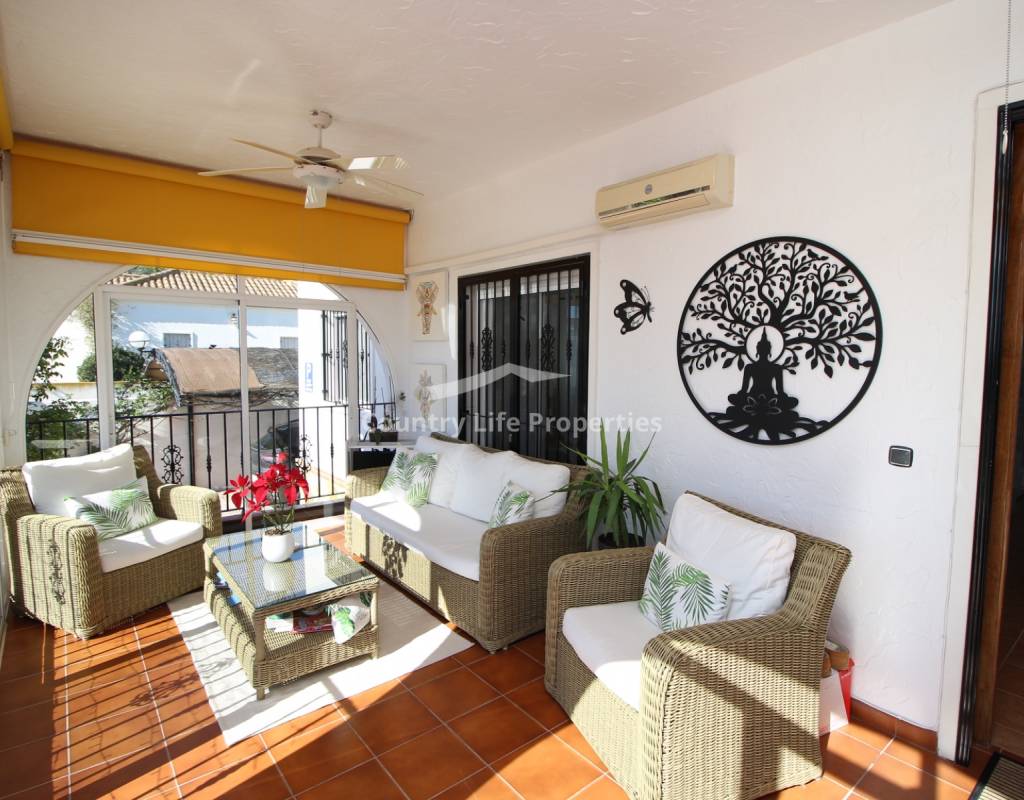 Внутри дома находится большая современная полностью оборудованная кухня, отдельная прачечная и просторная гостиная с электрическим камином. Во всех помещениях установлен кондиционер, включая кухню и крытую террасу.